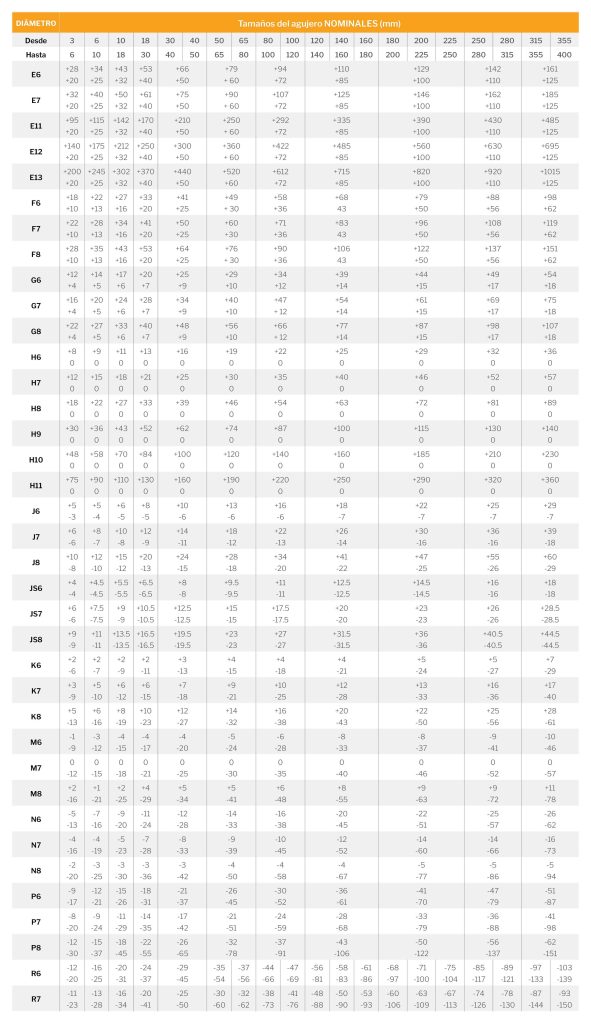 Para facilitar la toma de decisiones existen una tablas normalizadas por la unión europea que nos ayudan a saber qué medidas máximas y mínimas debemos dejar tanto en agujeros como en ejes.