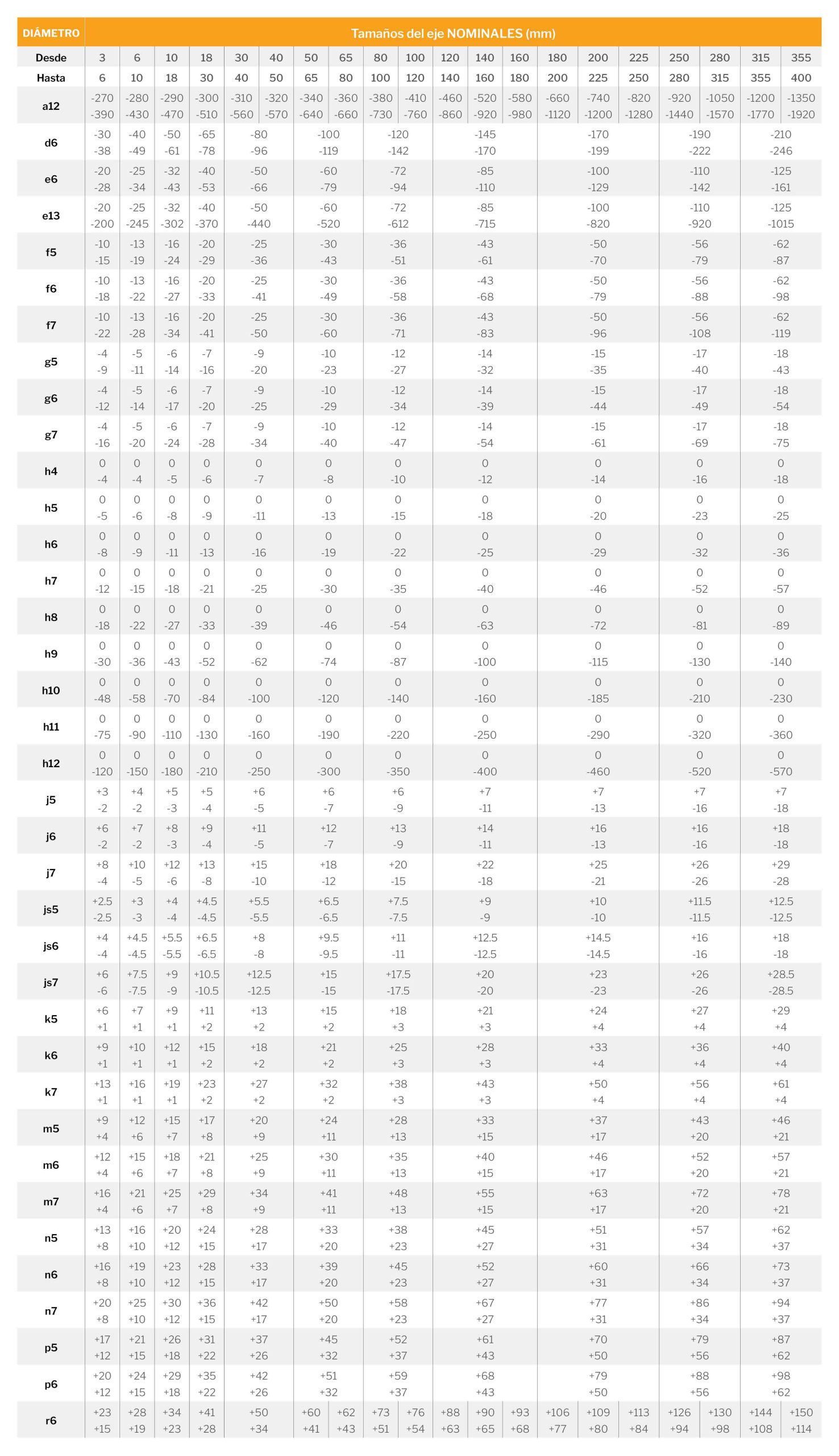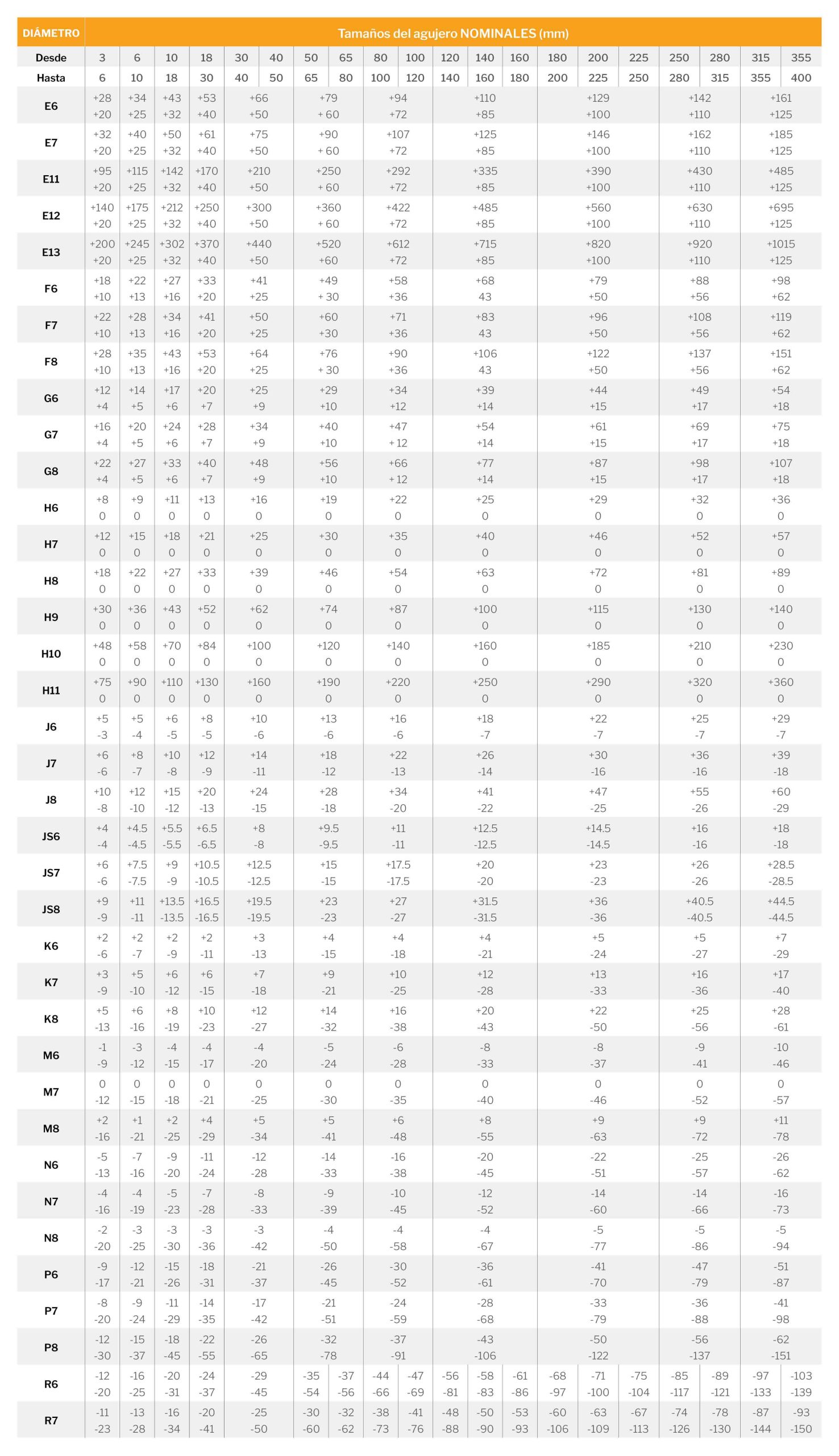 Para facilitar la toma de decisiones existen una tablas normalizadas por la unión europea que nos ayudan a saber qué medidas máximas y mínimas debemos dejar tanto en agujeros como en ejes.